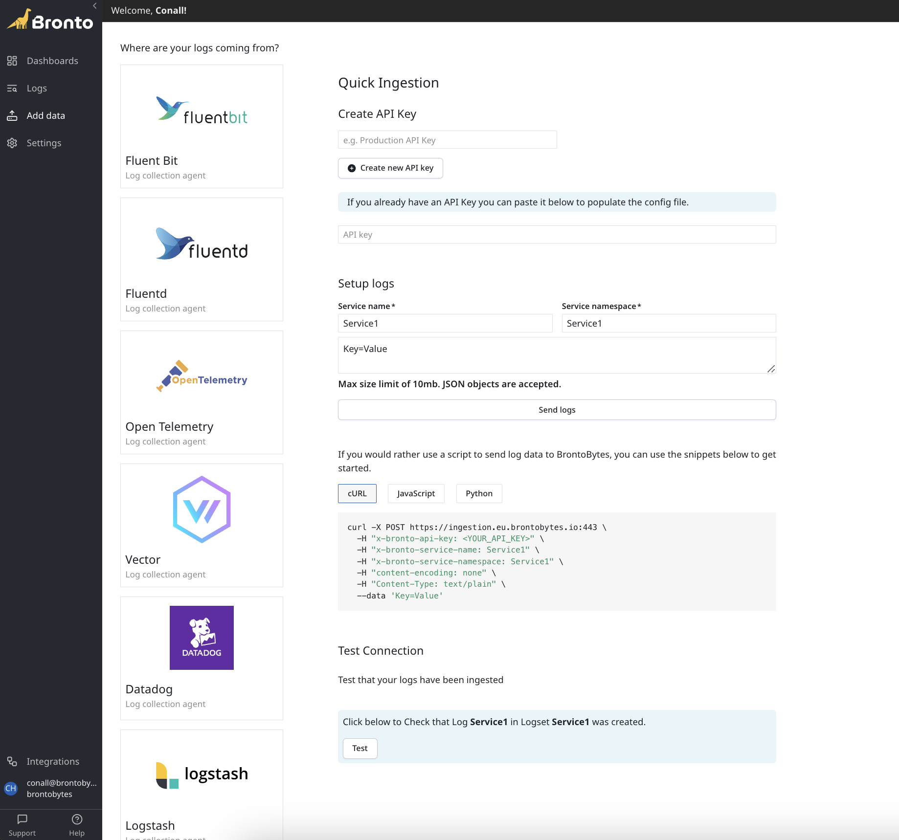 To start quick ingestion, click on the “Add data” item in the application sidebar.